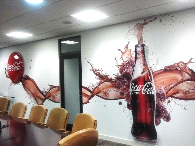 Aplicação de elementos gráficos em lojas, bares, restaurantes e escritórios.